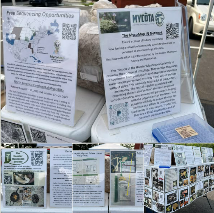 Hello everyone, I’m the Mycota Lab Indiana Coordinator with the Hoosier Mushroom Society, both of which are nonprofit organizations. We’re building a network of citizen scientists dedicated to documenting all macrofungi in Indiana while educating the public about common edible species. What fungal communities exist in Indiana? When do they fruit? What environments do they inhabit? Where are the fungal hotspots? We aim to find out. Sign up today and bring your dried voucher specimens to the Trafalgar Farmers Market for free DNA testing on the 2nd and 4th Thursdays from 4:30 PM to 7:30 PM at the Trafalgar Community Center, 335 Pleasant Street, Trafalgar, IN 46181, and/or the Nashville Farmers Market at the Brown County Inn on Sundays from 11 AM to 2 PM. While there, explore our interactive display showcasing over 60 edible species and 17 to avoid.