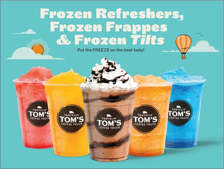 We’ll have all of our Hot and Iced drinks, like coffee, lattes, apple cider, refreshers, Frappes, Lemonades, etc. AND…we have new frozen drinks: Frozen Strawberry Refresher, Frozen Peach Mango, Frozen Hot Chocolate, Frozen Berry Tilt, and Frozen Orange/Pineapple Tilt.